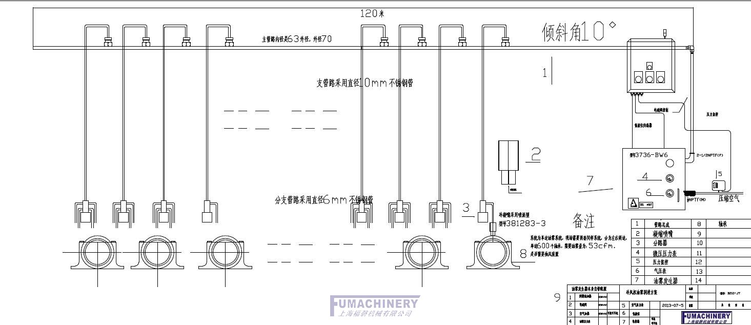 鋼廠風(fēng)冷線 鋼廠風(fēng)冷線,一般承載整卷鋼材,鋼材溫度多為700-800攝氏度,造成周圍軸承溫度升高,即使使用了耐高溫的油脂潤滑軸承,解決不了軸承溫度升高的問題。